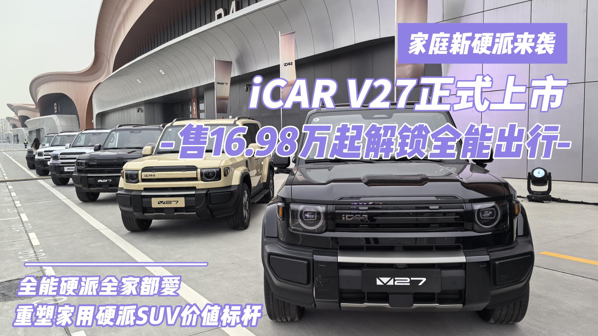 2026年3月13日,定位**家庭新硬派**的iCAR V27重磅上市,新车推出3款配置车型,官方指导价16.98-19.68万元。5月31...