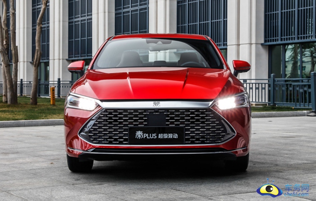 外观方面,作为秦家族的第三款全新车型,秦PLUS DM-i采用了最新的Dragon Face家族设计语言,六边形的大嘴继续向两侧延展,格栅上方连接两侧大灯的银色镀铬饰条的设计更像比亚迪汉DM。两侧头灯造型依旧扁平,但内部灯腔结构采用“箭雨式”最新设计,这也更加贴切“秦”的王朝系列定位。