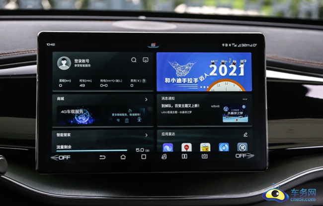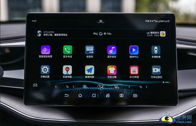 10.1英寸/12.8英寸悬浮旋转中控屏内置DiLink 3.0智能网联系统,语音控制模块来自科大讯飞,支持模糊语义、童声识别及多人互动等功能,识别率高,响应速度也足够快,实用体验出色,集成了诸多信息、娱乐功能。