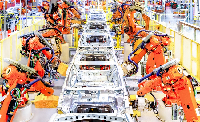 在“智”造硬实力方面,冲压车间整线自动化率高达90%,国际先进的伺服压机线每3秒钟便可冲一个件,处于世界一流水平;焊装车间采用柔性化主拼,平均120秒即可焊装完成一台车;涂装车间使用全球领先的干式喷漆系统、CG800超高泳透力电泳漆等技术,有效节约能源并确保车身持久的防腐性能;总装车间集品质、智能、环保于一体,全自动天窗安装机器人、门胶条自动镶嵌设备、全自动底盘合装台等领先智能设备,保障了高效生产和卓越品质。