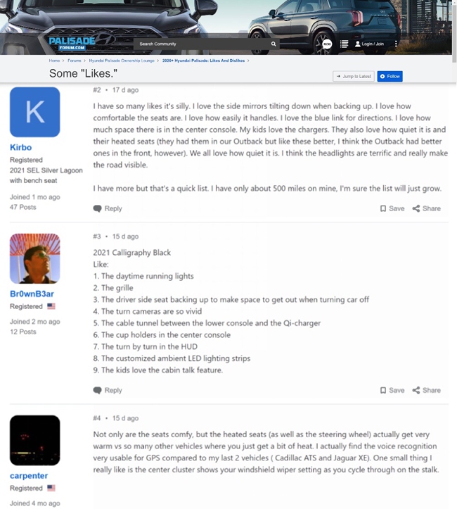 丰富的海外车主口碑为中国消费者选购帕里斯帝(PALISADE)提供有价值的参考