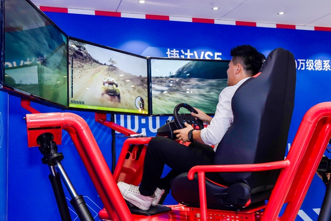 当大屏幕上播放「一款赛车捷达VS5的诞生」改装视频时,吸引众多媒体人和车圈主播,围绕着捷达展台、拉力赛车、模拟赛车区等,进行现场拍摄与趣味直播,让关注捷达或喜欢赛车的线上网友直呼过瘾。
