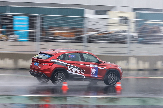 在计时停车赛中,参赛车辆需要在300米的加速跑道上尽快加速,同时在规定的停车区内迅速停稳,综合考验车辆的短距离急加速和制动能力。柯迪亚克GT在该环节,以14.271秒的用时在全场所有参赛的16款SUV中排名第一,轻松拿下组别冠军。
