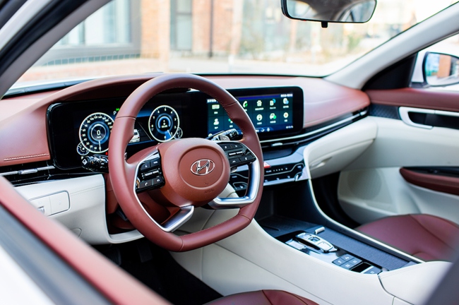 坐在全新一代名图的驾驶席上,任谁都会被由12.3英寸中控显示屏 12.3英寸液晶仪表盘组成的超大智慧连体屏带来的科技感震慑到。当然,这套双12.3英寸智慧连屏的科技感也并不是仅仅停留在视觉层面,功能上同样科技感十足,且具有很高的实用趣味性。