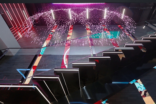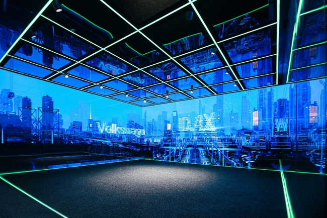 在上下两层的太古里展厅内,我们以大众品牌全新设计语言打造出时尚魅力空间,展现纯电低碳生活方式。一楼展厅中央区域,270度全尺寸LED屏幕打造沉浸式数字互动空间,为客户带来科技的震撼与心动,感受汽车带来的美好生活。根据不断变化的主题场景,客户可以来一场梦幻打卡。楼梯侧8米高的整体墙面采用青砖元素,镶嵌流媒体屏与灯光数字水幕,屏幕内外虚拟水流与真实水流交相呼应,沿着楼梯拾阶而上,伴随着悦耳的水声,成都丰富的地域文化内容精彩呈现,带来传统与现代的强烈对比。在二层,展车配合停车屏幕炫动的画面,极具视觉冲击力,一辆ID.4X仿佛要冲出橱窗向空中行驶。展厅还采用了人脸智能识别、16联屏数字化车辆配置、3D打印MEB平台“三电”模型以及 5G 实时互联技术,通过更直观的展示与体验,令选车与购车更轻松高效。