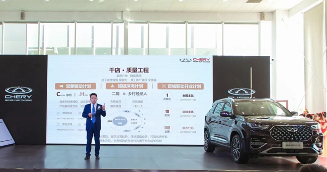 在终端,奇瑞汽车将全面推进“千店质量工程”,实施“双擎驱动计划”和“超级深海计划”,实现终端渠道数量和质量的双提升。