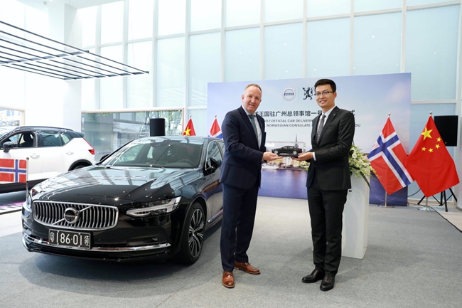 沃尔沃汽车向挪威王国驻广州总领事馆交付一号公务用车