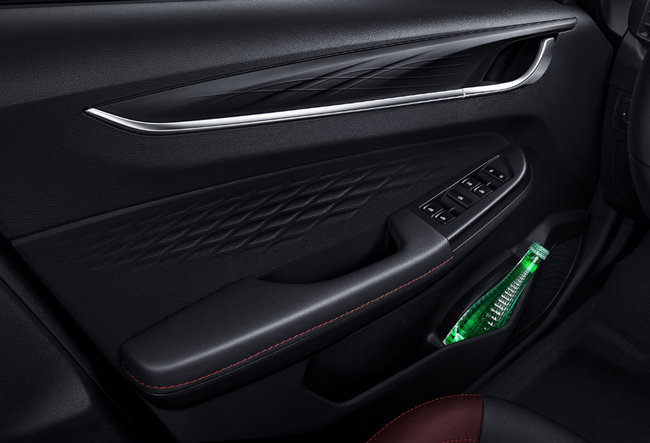 新车在门板处做了多项创新设计。内门把手造型设计灵感来自回旋镖,搭配延展的镀铬饰条,与仪表台相呼应,共同营造出环阔式座舱氛围。门把手装饰板采用全新的科技纹理,极具时尚感和科技感。中饰板装饰图案则采用了凤凰羽毛式纹理,传承中国特有的文化内涵,营造出新中式美感。