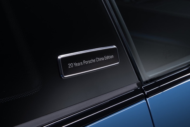 与此同时,保时捷独家定制部门 Porsche Exclusive Manufaktur 通过高品质的定制化元素,进一步彰显了这款纪念版车型的特别寓意和收藏价值。Porsche Exclusive Manufaktur 不仅为客户提供个性化服务,在打造特别版车型方面也具有悠久的历史。独特的整车设计理念和精致的细节工艺令这些特别版车型与众不同。上海车展现场,白金色的20周年设计元素被诠释于全新 911 Turbo S 保时捷中国 20 周年纪念版周身,与奥斯陆蓝车身巧妙融合。内饰中,大量的车身同色设计强化了整体视觉的和谐统一。除了两侧 B 柱上的“20 Years Porsche China Edition”银色徽章,“Porsche Exclusive Manufaktur”印花和车型名称等纪念性标识恰到好处地点缀于车内外,强调了这款纪念版车型的特殊身份。
