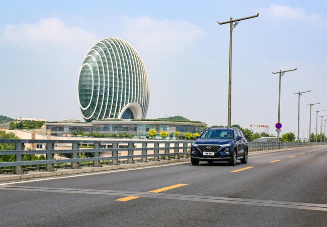 买“大块头”的SUV,我们夫妻俩都觉得动力得跟上才行,不然“小马拉大车”的话不但难开还费油,于是我们预约了第四代胜达的试乘试驾。系上安全带,一键启动即刻出发。