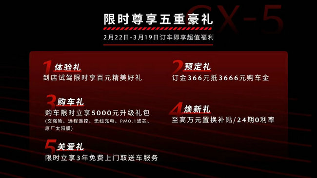 2月22日,全新升级的“纯粹驾趣SUV”新MAZDA CX-5正式开启预售,新车预售价17.98万起。