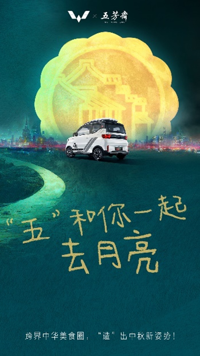 【2022年8月23日】为了与年轻人玩在一起,传达月圆人团圆的节日祝福,五菱品牌今日正式官宣,与五芳斋开展中秋跨界合作,通过携手打造联名中秋礼盒、合拍中秋创意大片、举办线下登月快闪店、联合直播宠粉等一系列品牌联动方式贴近年轻人,以年轻化的姿态开启欢乐中秋时光。