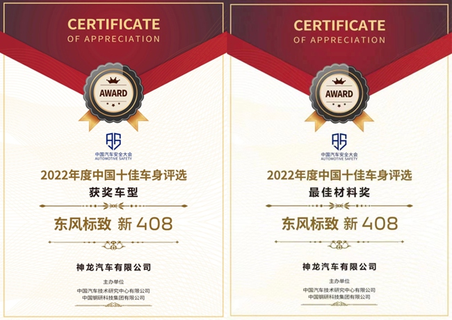 新408能够一举斩获“2022中国十佳车身”与“最佳材料”两项大奖,离不开神龙汽车打造“良心车、安全车、放心车”的品质传承。