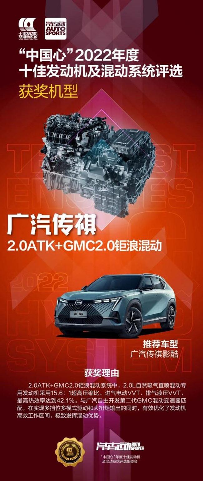 目前,市面上在售的影豹车型,动力系统有两种,分别是搭载钜浪动力第三代1.5T GDI发动机 七速湿式双离合变速箱的燃油版,以及搭载广汽2.0ATK GMC 2.0钜浪混动系统的混动版,尽管两种动力形式不一样,但相同的是,影豹这两种动力组合,都获得了同一个权威奖项。其中,燃油版发动机在2021年获得“中国心”年度十佳发动机,混动系统则是在2022年获得“中国心”十佳发动机及混动系统称号。可以说,得益于多年正向研发的努力,传祺在发动机这一块,确实走在了大多数自主品牌前面。