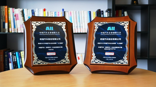 奇瑞同时入选中国汽车(乘用车)企业创新TOP20、自主企业TOP10