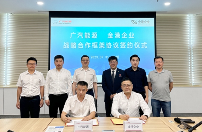 2023年7月31日,广汽埃安旗下广汽能源与金港汽车文化发展(北京)股份有限公司(简称“金港股份”)举行战略合作协议签约仪式。金港股份总裁叶明钦、壹马金港董事长何伟强,广汽埃安副总经理肖勇、广汽能源总经理刘志辉出席并见证签约。