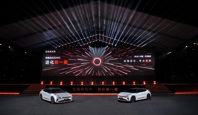 2023年9月1日极氪智能科技在宁波国际赛车场发布五大核心技术进化成果:极氪001高性能版——001 FR正式亮相,以2.07秒的零百加速,成为加速最快的量产纯电汽车;001 FR搭载全球首次量产发布的四电机分布式电驱,全面释放超跑级性能;行业首发量产四轮扭矩矢量控制,赋予001 FR史无前例的安全与操控;卫星通信技术全球首次量产上车,让安全从此不再失联;在补能体系方面,极充加速进化,单枪输出功率最高的充电桩——极充V3,将为用户带来更极致的充电体验。