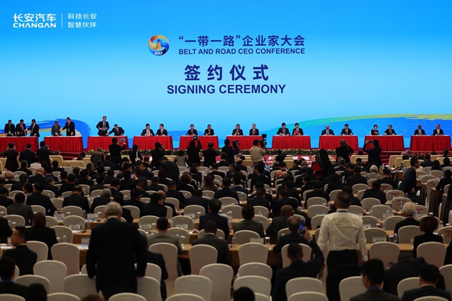 10月17日至18日,第三届“一带一路”国际合作高峰论坛在北京举行,主题为“高质量共建‘一带一路’,携手实现共同发展繁荣”。长安汽车董事长朱华荣出席了17日举办的“一带一路”企业家大会,与来自80余个国家和地区的中外代表共聚国家会议中心,凝聚互利合作共识,推动高质量共建“一带一路”走深走实画出最大同心圆,寻求最大公约数。