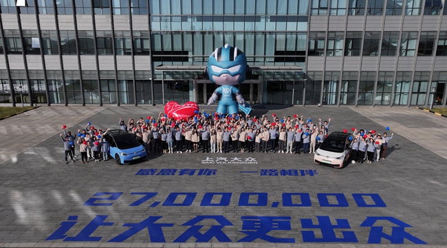 【2023年11月27日,上海】上汽大众又整出大动静!11月27日,城市英雄ID.MAN屹立在上汽大众安亭厂区,6.8米的巨型身高吸引人群争相打卡围观。2024款全新峡湾蓝车色的ID.3惊喜现身,还带来了新的小伙伴改装车“清新莓莓”,红蓝CP现场“比心”,这些都是为了见证上汽大众第2700万辆汽车下线。至此,上汽大众也成为国内首个累计产量突破2700万的乘用车企业。