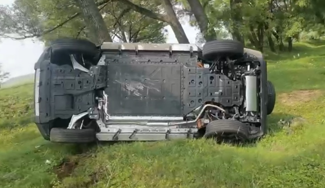 从现场视频来看,尽管车辆翻滚后左侧车头遭受重创,前挡风玻璃也出现裂纹,庆幸的是,A、B柱,上、下横梁等关键承载结构保持完好,有效保护了乘员舱的完整性,避免了空间的侵入与挤压,为车内人员筑起了一道可靠的安全屏障。另外,车辆电池包也经受住了考验,未造成二次事故。